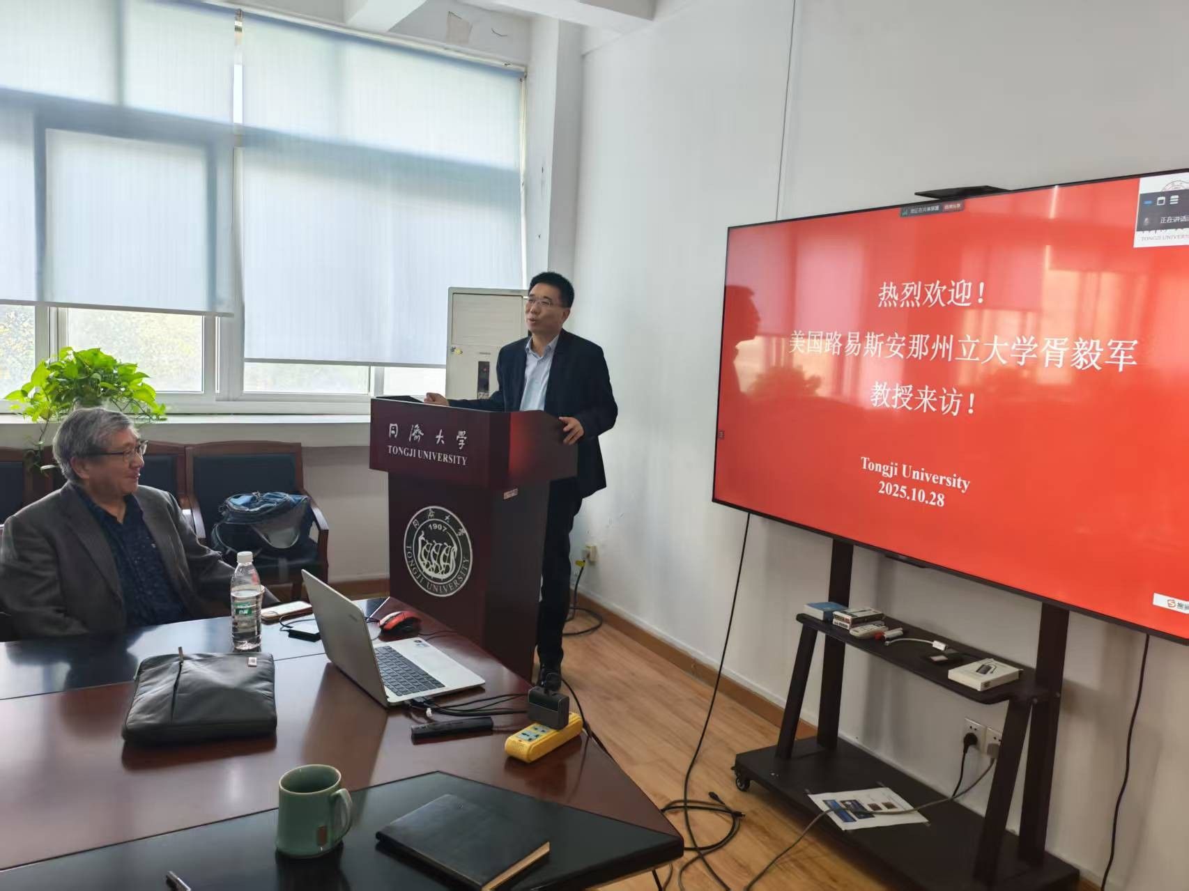 2025年10月28日,应同济大学水利工程系邀请,美国路易斯安那州立大学终身教授胥毅军访问水利工程系。学术报告会在同济大学岩土楼425报告厅顺利举行。报告会由代朝猛教授主持,王喜华研究员及多名博士、硕士研究生共同参与。
