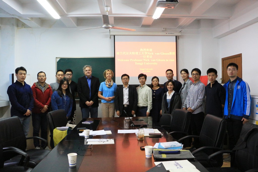2016年11月14日,同济大学与荷兰代尔夫特理工大学合作交流会议在我校岩土楼425会议室举行,代尔夫特理工大学Nick van Giesen教授、Marie Claire Veldhuis博士、我校土木工程学院水利工程系刘曙光教授、代朝猛老师、同济大学外事办公室张向荣老师参加了会议。